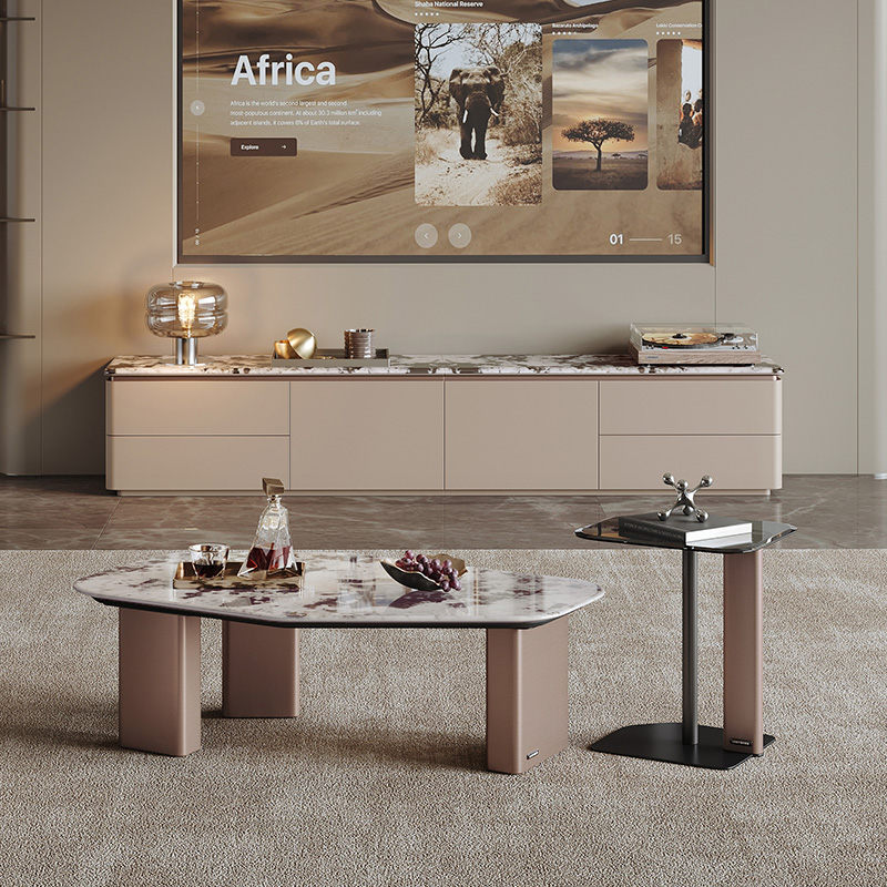 スタイルと機能性を兼ね備えたこの2メートルのテレビスタンドは、上質な大理石の天板がリビングスペースに優雅な雰囲気を添えます。本体は耐久性の高い合板製で、長くお使いいただけます。広々とした複数の引き出しは、メディアアクセサリーや日用品をすっきりと整理できる十分な収納力を提供します。洗練されたデザインと実用的な収納ソリューションを兼ね備えた、モダンな住宅に最適なテレビスタンドです。
