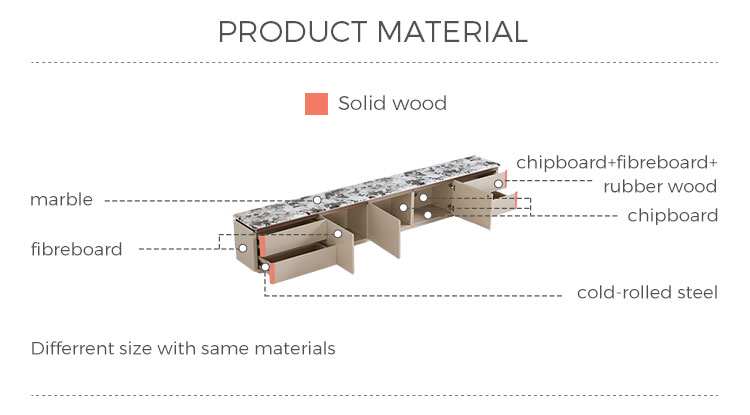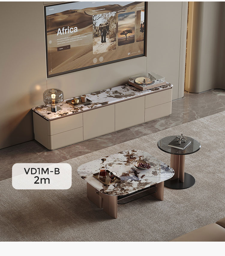 大理石天板と複数の引き出しを備えた2メートルテレビスタンド VD1M-B