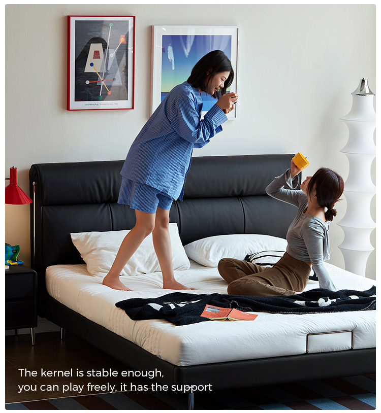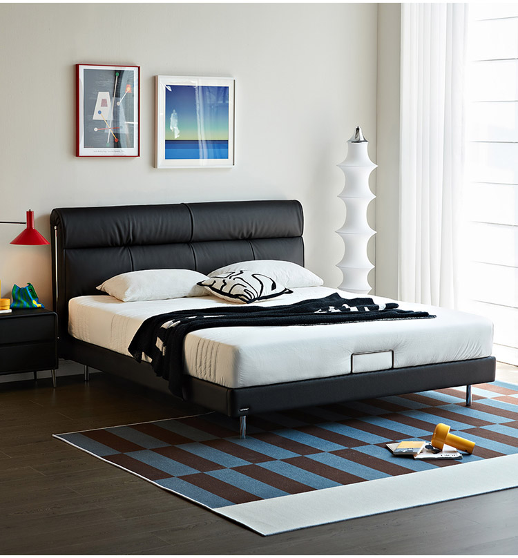 ブラックカラーレザーソフトベッド(木製脚付き)PC580-A |
