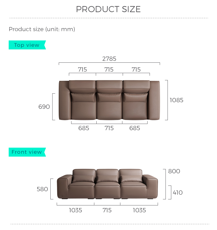 ブラウンカラーLINSY高品質レザーソファホームホテル用BS889-A |