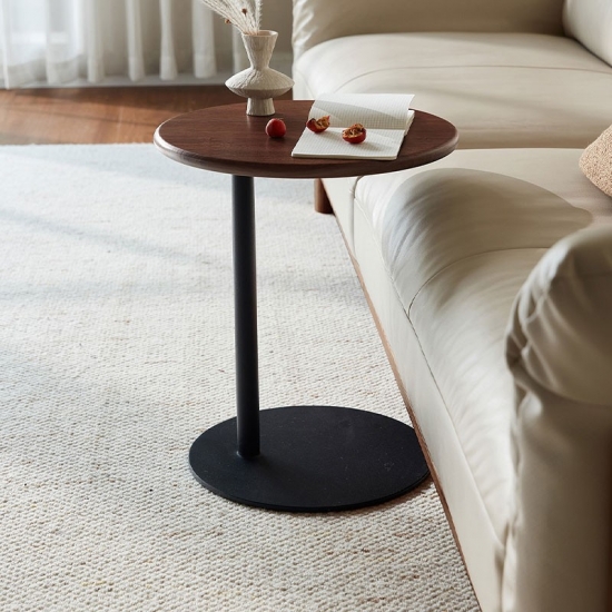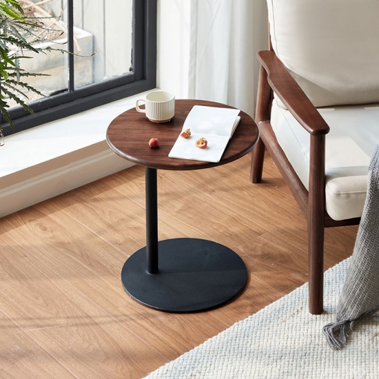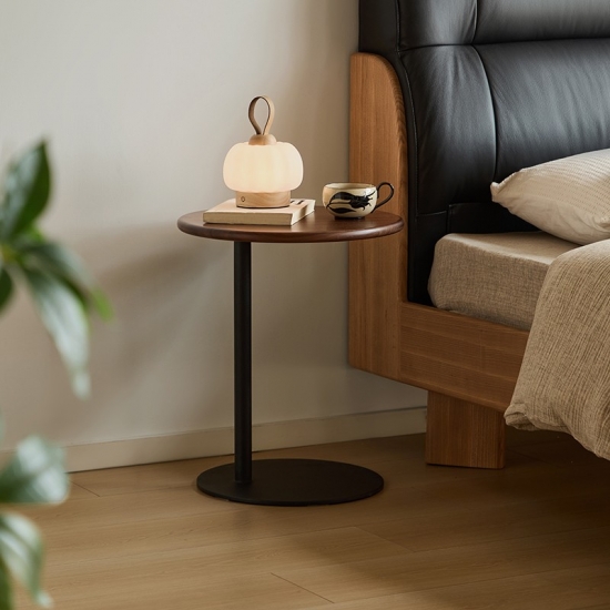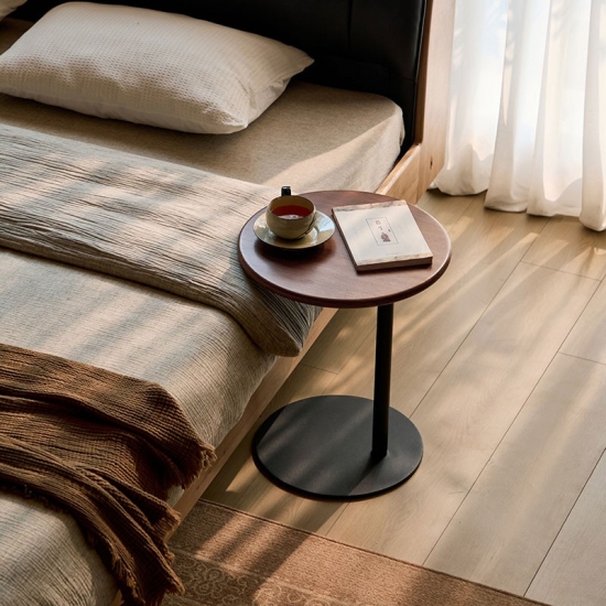 リビングルーム、寝室に最適なブラウンカラーのラウンド型ポータブルコーヒーテーブル RQ4J-A