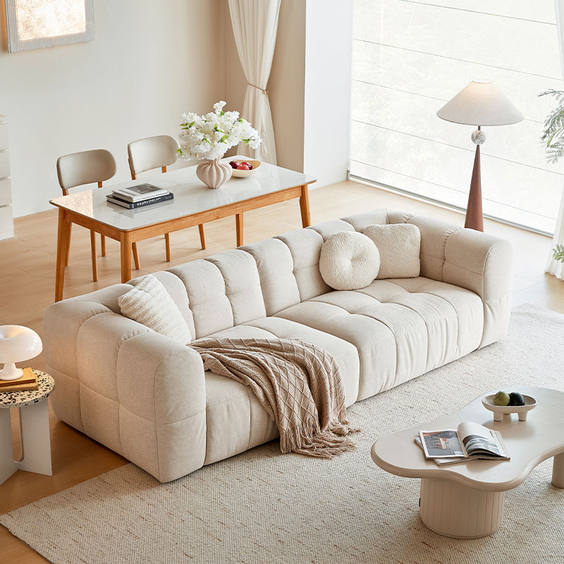 ホワイトキャットクローファブリックのラージソファで、雲のように心地良い世界に浸りましょう。究極のリラクゼーションを追求したデザインと耐久性を兼ね備えたこのソファは、贅沢な柔らかさと安心の耐久性を兼ね備えています。4層構造のシートクッションならではの座り心地をぜひご体感ください。優しく深く沈み込む感覚と、あらゆる角度からサポートする抜群の座り心地が、あなたを優しく包み込みます。