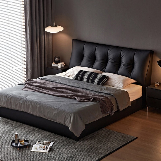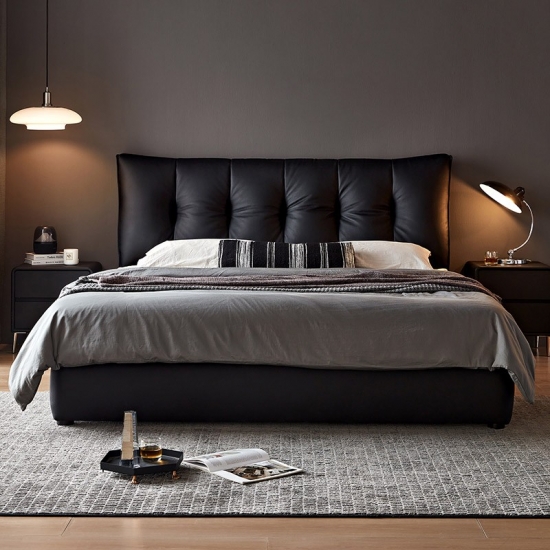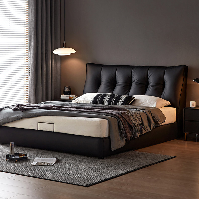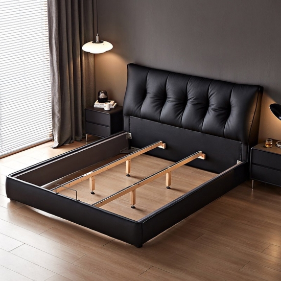 エレガントで快適なモダンブラックレザーダブルベッド TPC566-A