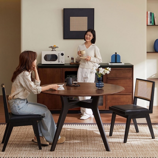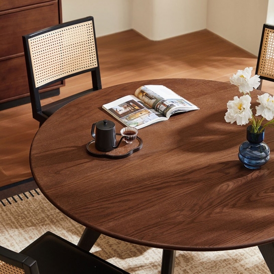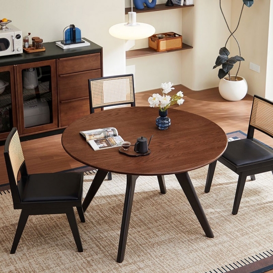 人と人との繋がりを大切にした、このラウンドブラウン無垢材ダイニングテーブルは、ダイニングスペースに温かみといつまでも変わらないスタイルをもたらします。豊かな天然木目と滑らかな円形のデザインは、会話を弾ませ、温かみのある雰囲気を演出します。6~8人が座れるちょうど良いサイズで、毎日の食事や特別な集まりのセンターピースとして最適です。何世代にもわたって使い続けられる無垢材で作られたこのテーブルは、いつまでも色褪せない思い出が生まれる場所です。
