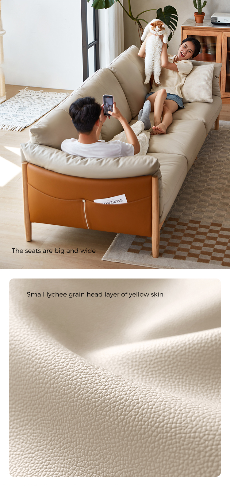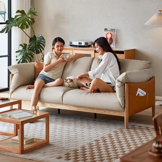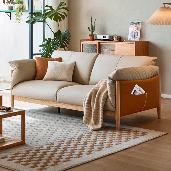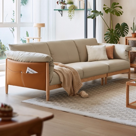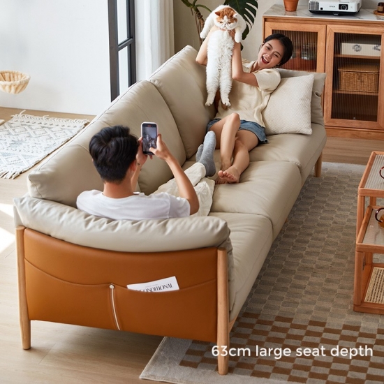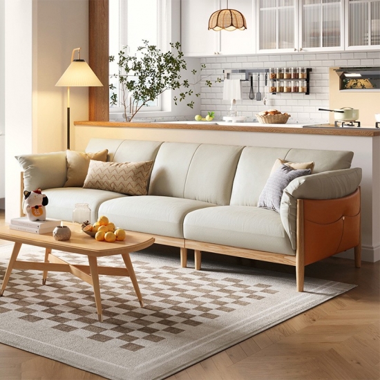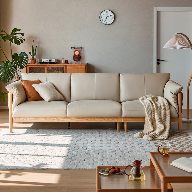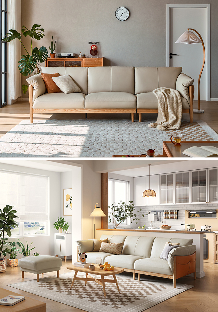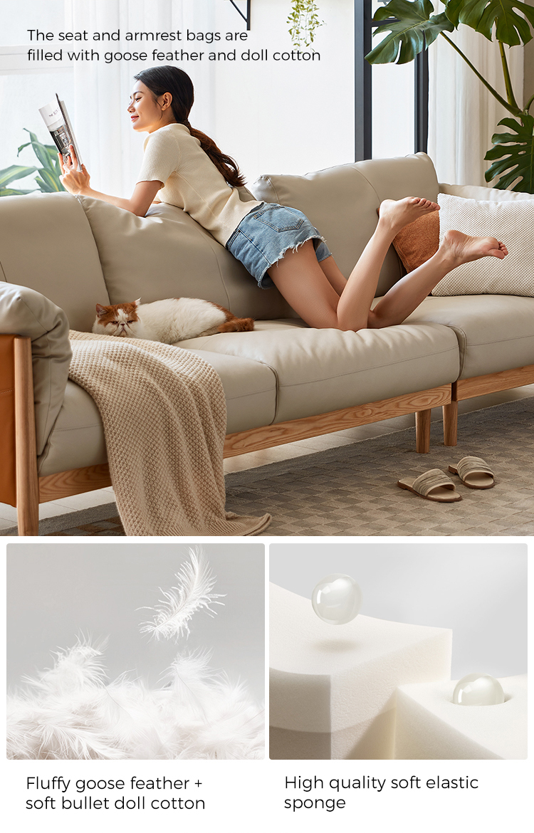 家庭用およびホテル用ライトカラー 3 人掛けソフトレザーソファ PS087-A |