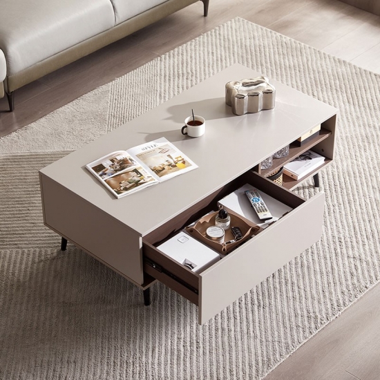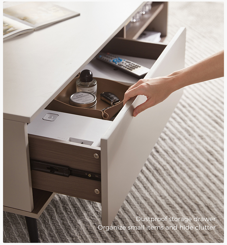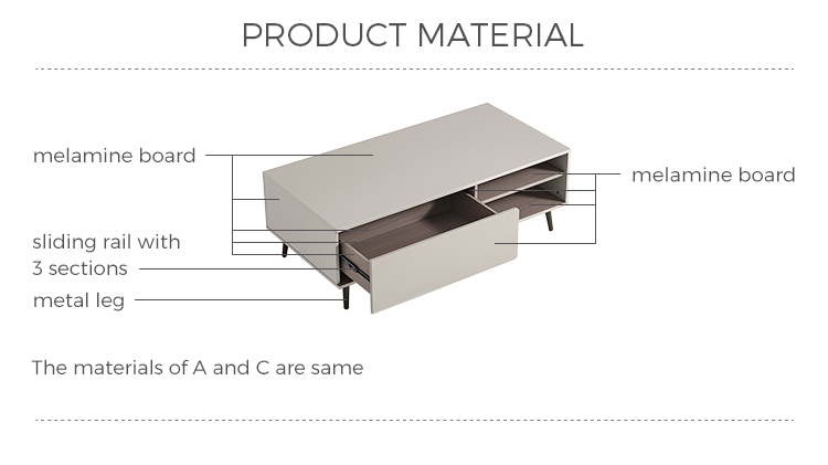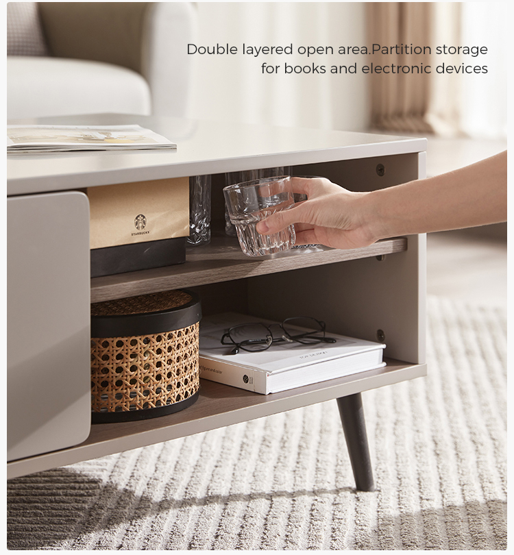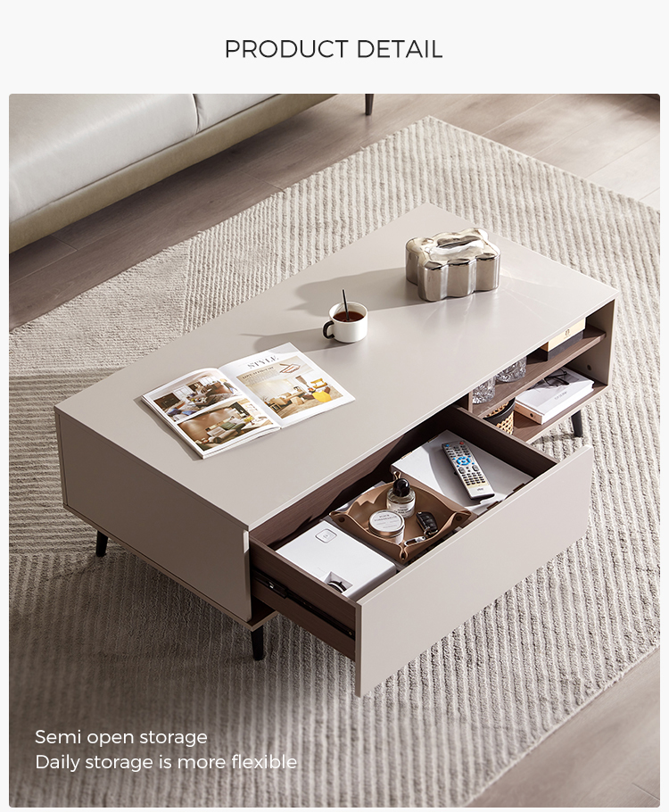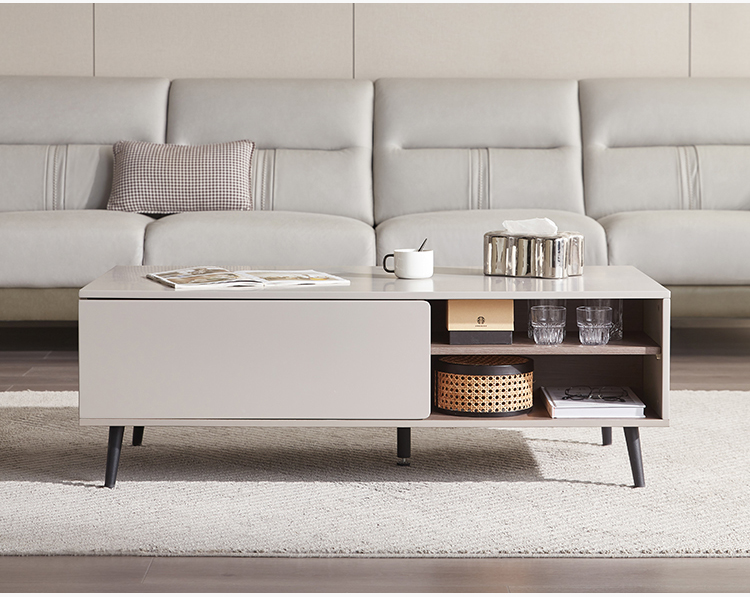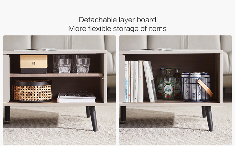リビングルームのこのコーヒーテーブルの上部は、防水性、耐摩耗性、高温耐性であり、非常に簡単に処理できる高強度MDFで作られています。 リビングルームスムーズのコーヒーテーブルの装飾は、人々にさわやかな視覚効果を与えます。