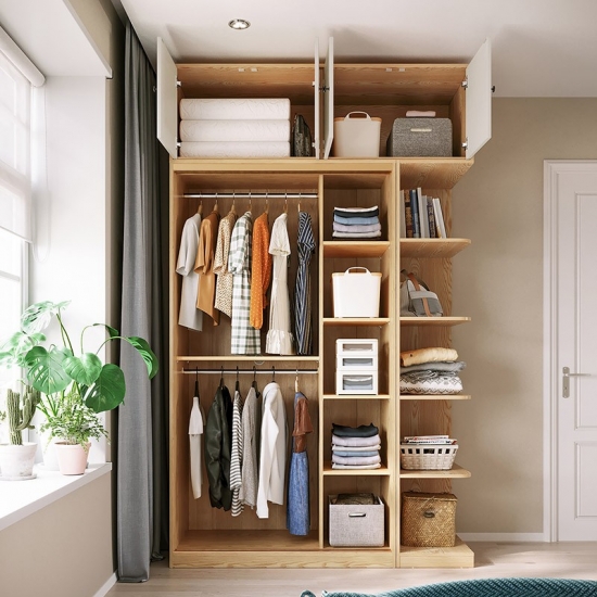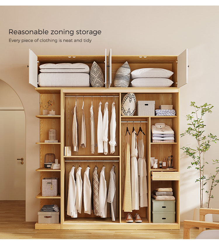 ワードローブは、寝室に家庭用品を保管するのに非常に多機能です。この大きなワードローブには 2 つのロッドがあり、便利な全長の吊り下げスペースがあり、ドレス、スーツ、コートなどの長くてシワになりやすい衣類に最適です。多層設計により、さまざまな衣類アイテムを独自の場所に配置できます。