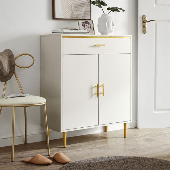 モダンなデザインの金の仕上げ、この靴のキャビネットは様式と機能をもたらします。