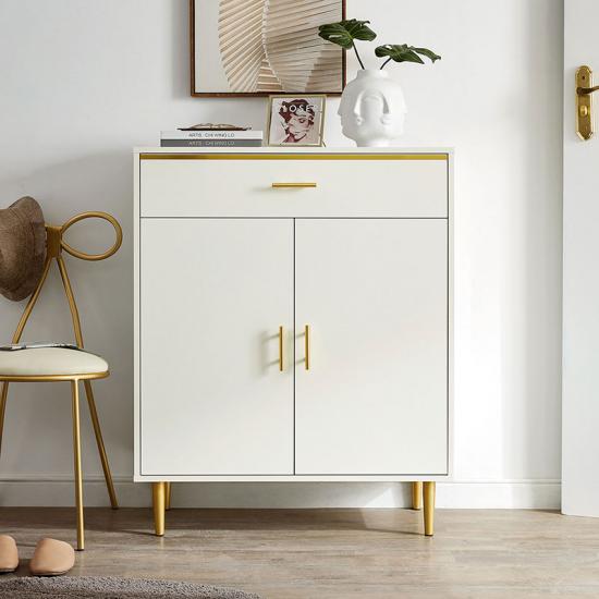 新鮮な雪の白で描かれているこの靴収納戸棚には2つのドアがあります。& 1引き出し (主要絵に見られる)、