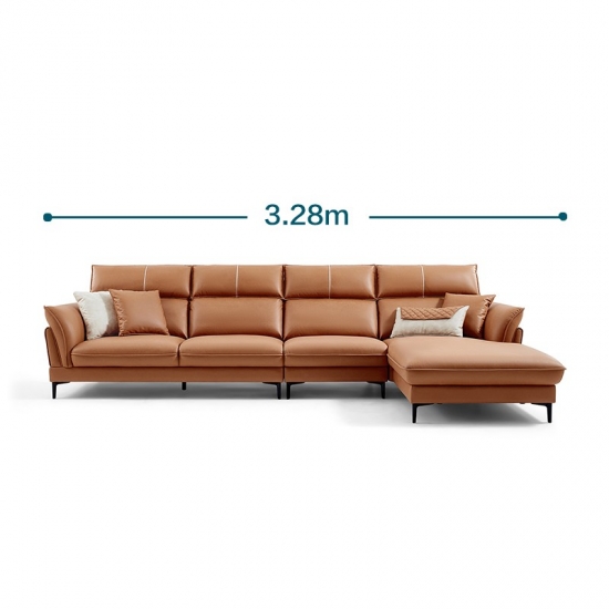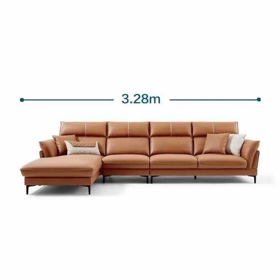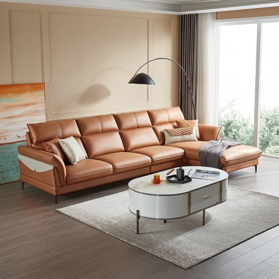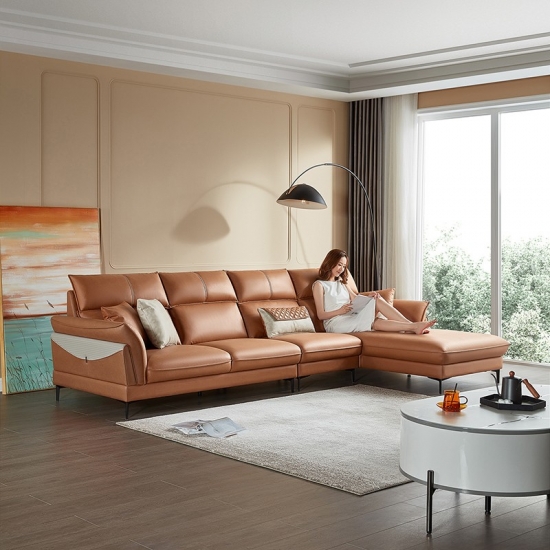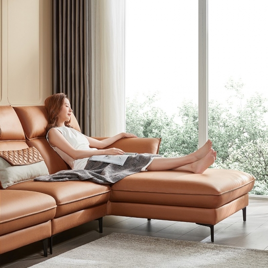 リンジーホーム家具L字型リビングルームレザーオレンジソファ寝椅子S155-A