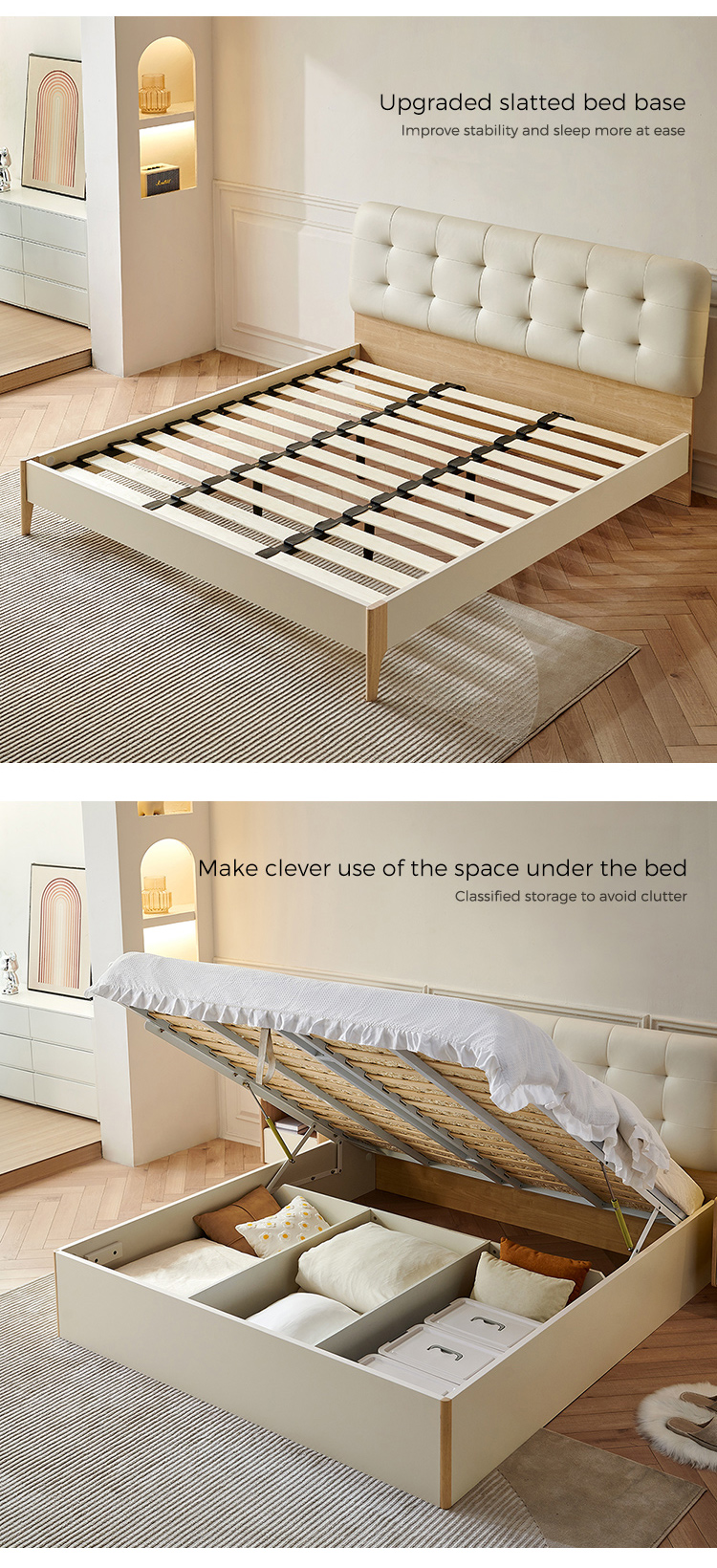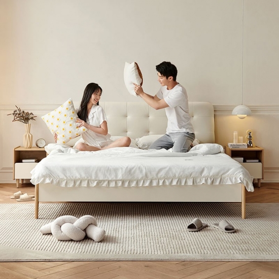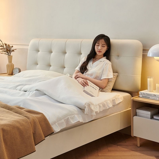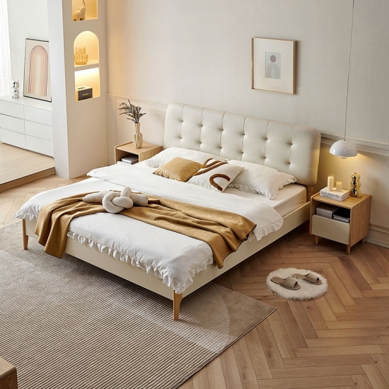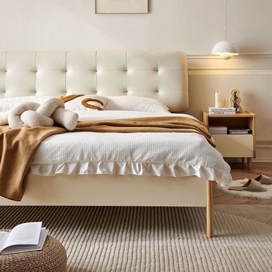 トップグレイン牛革を丸ごと使用したベッドは、柔らかく繊細で、より質感のある感触です。内部の柔らかく弾力性のあるスポンジが強力なサポートと快適な寄りかかりを提供します。このスタイリッシュなベッドは、あらゆる家の装飾に優雅さと洗練さをもたらします。高品質の素材で作られており、耐久性があるだけでなく非常に快適なので、贅沢な家庭体験に最適です。