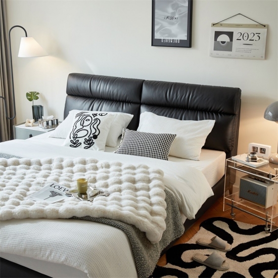 LINSY モダンな寝室の家具 レザー ダブルベッド BC024