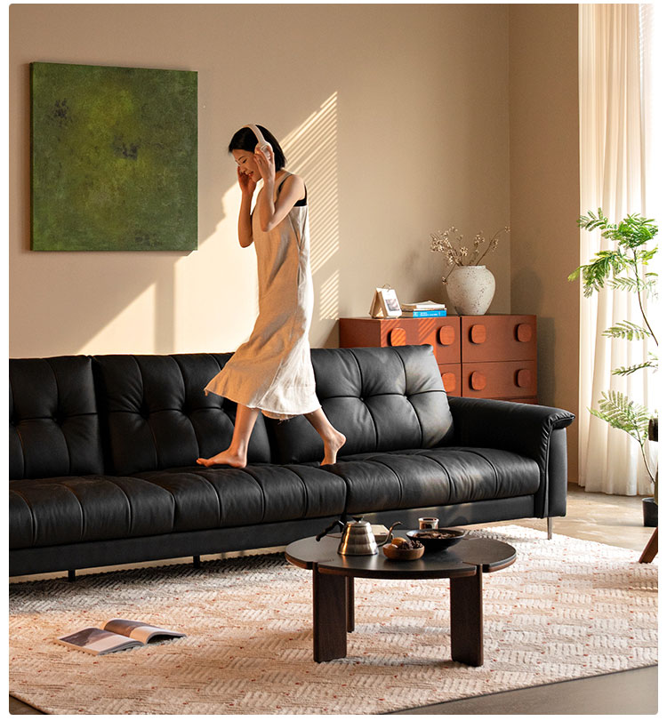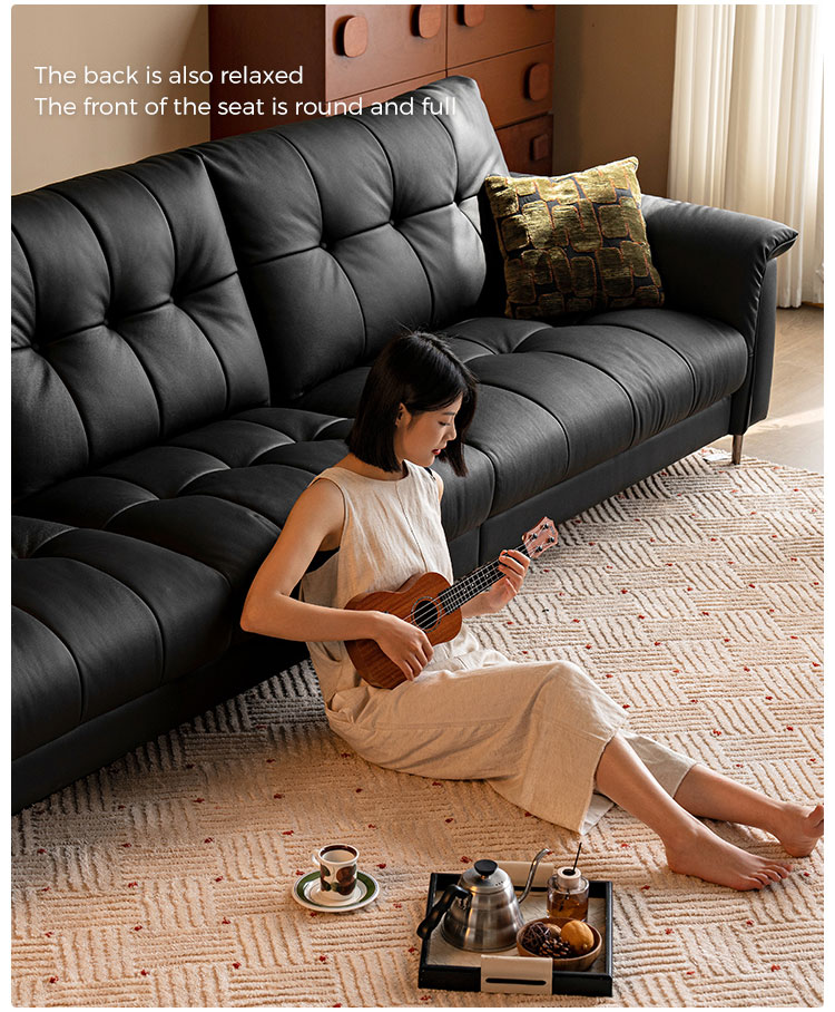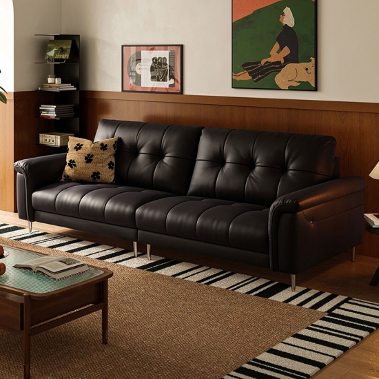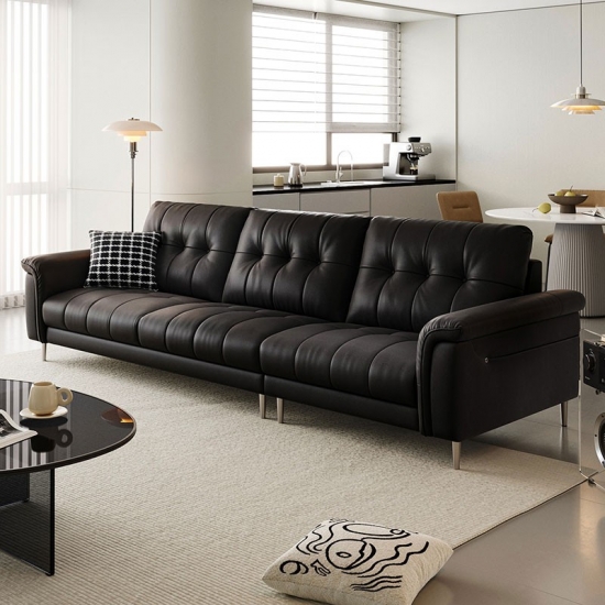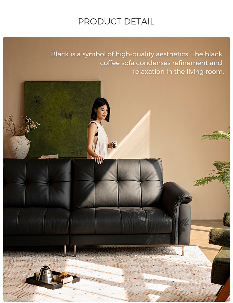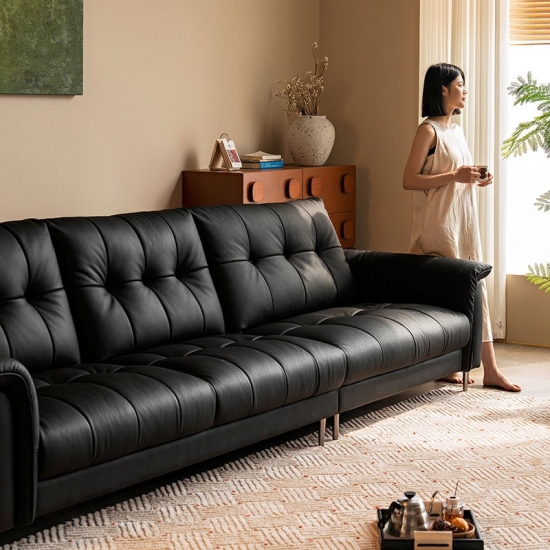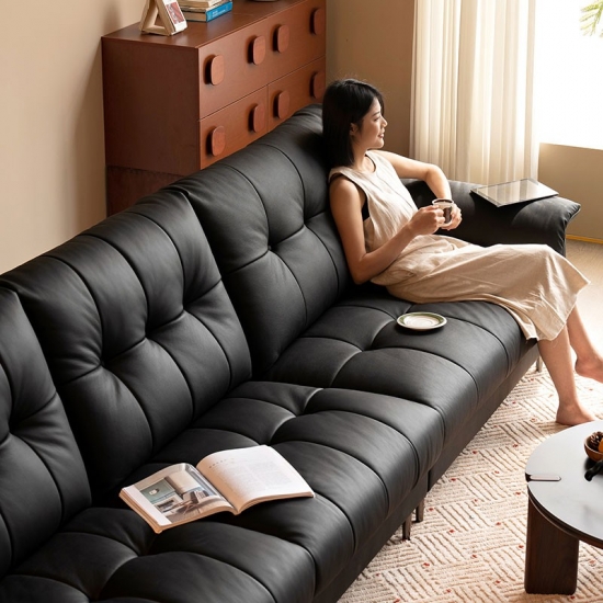 LINSY モダン ブラックティー チェスターフィールドレザーソファ PS660-A