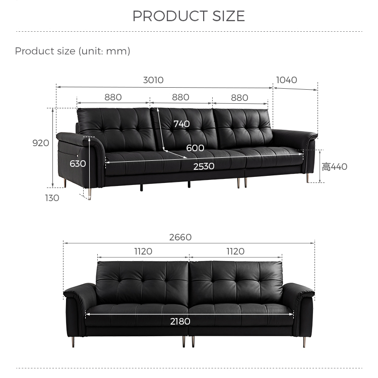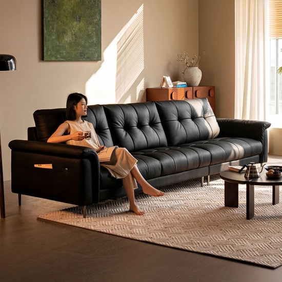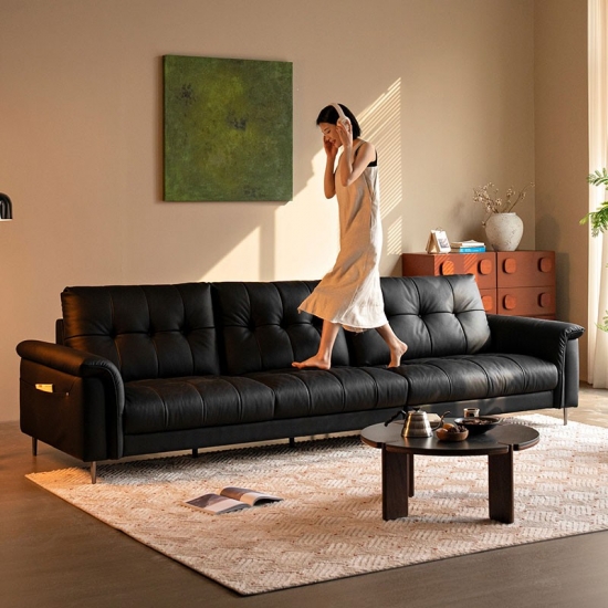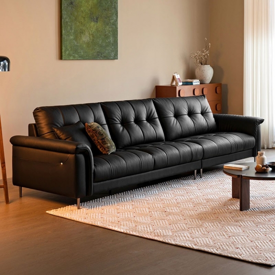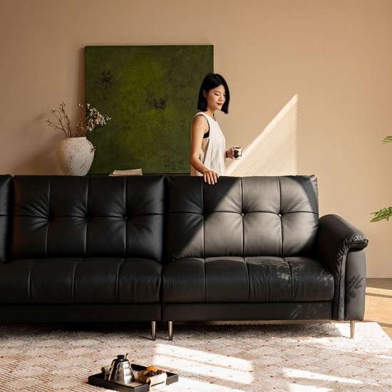 LINSY モダン ブラックティー チェスターフィールドレザーソファ PS660-A |