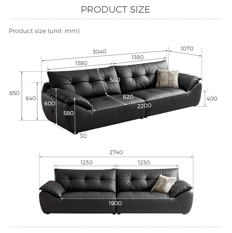 LINSY モダン ブラックティー 本革ソファ PS662-A |
