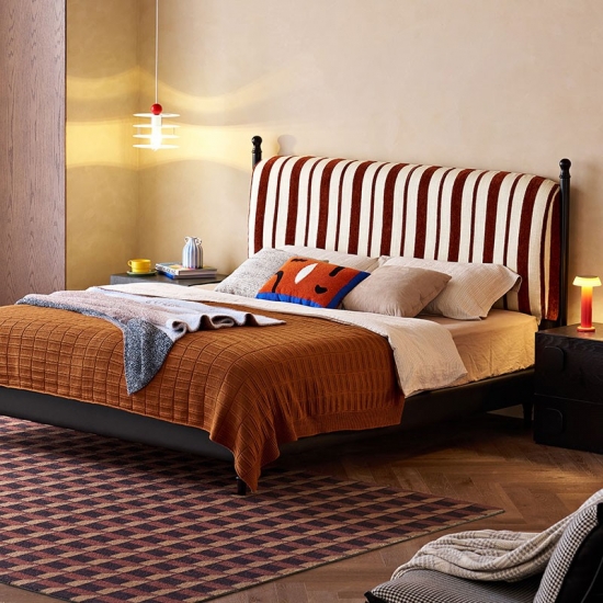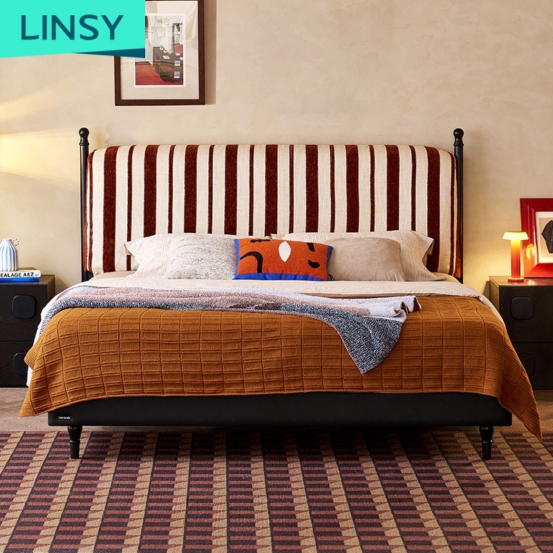 LINSY モダン バーガンディ キャットクロー ファブリックベッド BC502-A