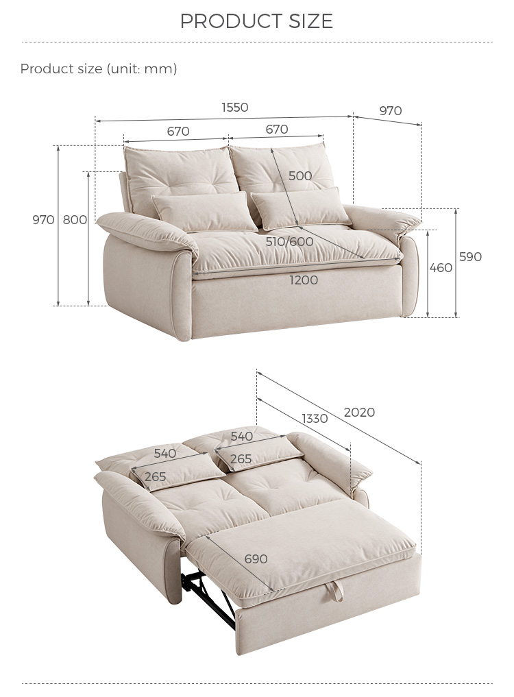 LINSY モダンデザイン 2人掛け シンプルファブリックソファベッド G064-A |