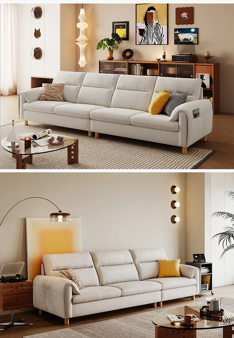 モダンなデザインと心地よい座り心地が見事に融合したホワイトファブリックソファで、リビングスペースをワンランクアップ。高品質で耐久性のあるファブリックで張られたこのソファは、柔らかくも弾力のある座り心地を実現しながら、洗練されたミニマルな美しさを備えています。ニュートラルなホワイトの色合いは、北欧風からコンテンポラリースタイルまで、あらゆるインテリアスタイルに自然に溶け込み、お部屋の主役として活躍します。