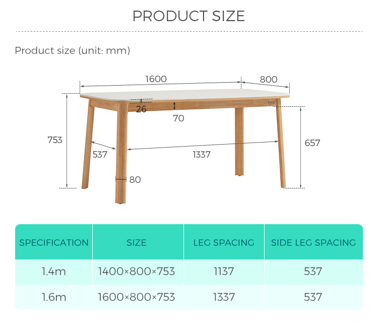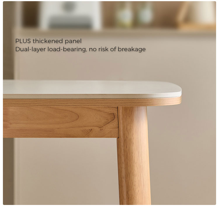 広々とした長方形の天板:広々とした長方形の天板は、家族での食事やゲストとの交流、さらにはワークスペースとしても十分なスペースを提供します。その形状は、会話や交流を自然に促します。