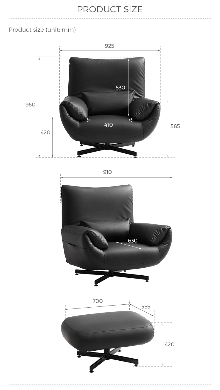 LINSY モダンソファチェア ブラックカラー 調節可能 シングルチェア DY205-A