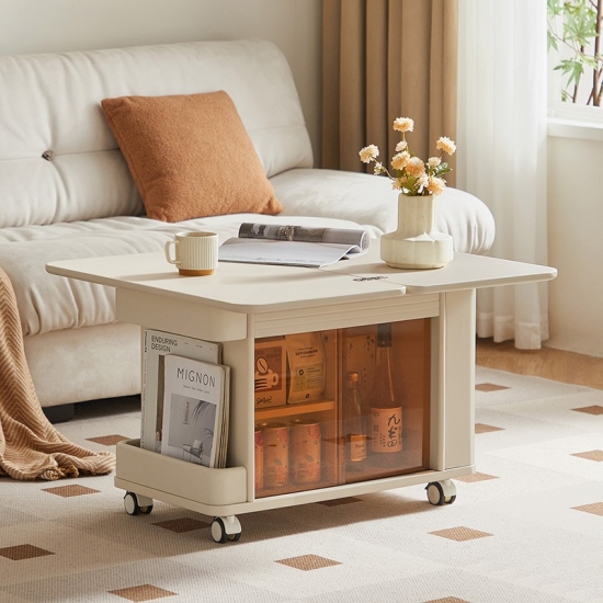 7Linsy Modern Style Movable Table beige Color Coffee Table with wheels lh202j1-a