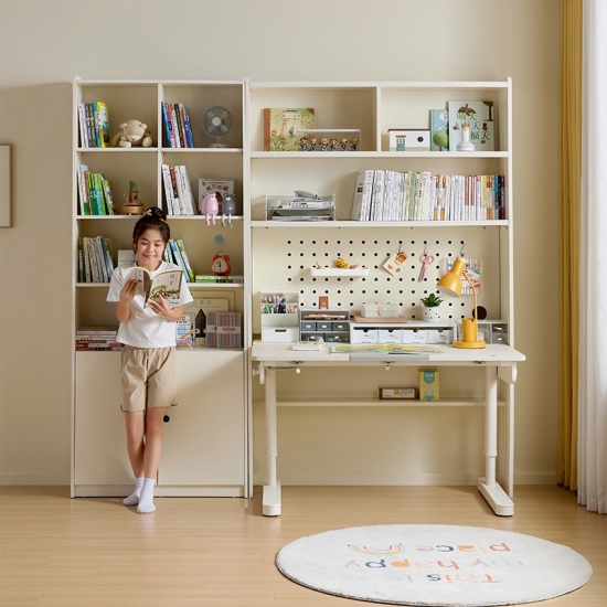 LINSY モダンスタイル ホワイトカラー 1.2m ライティングデスク 収納棚付き OM2X-A