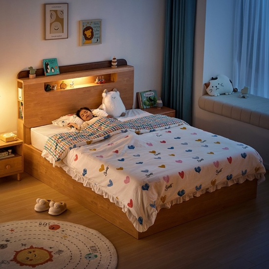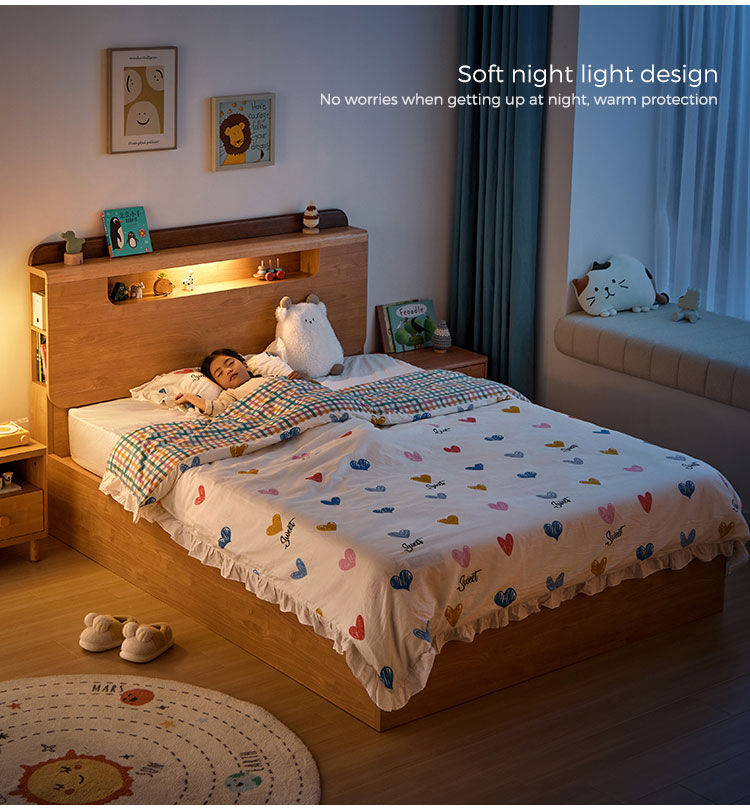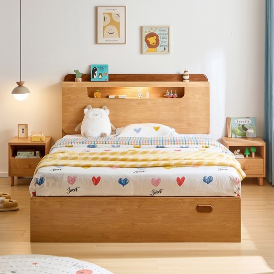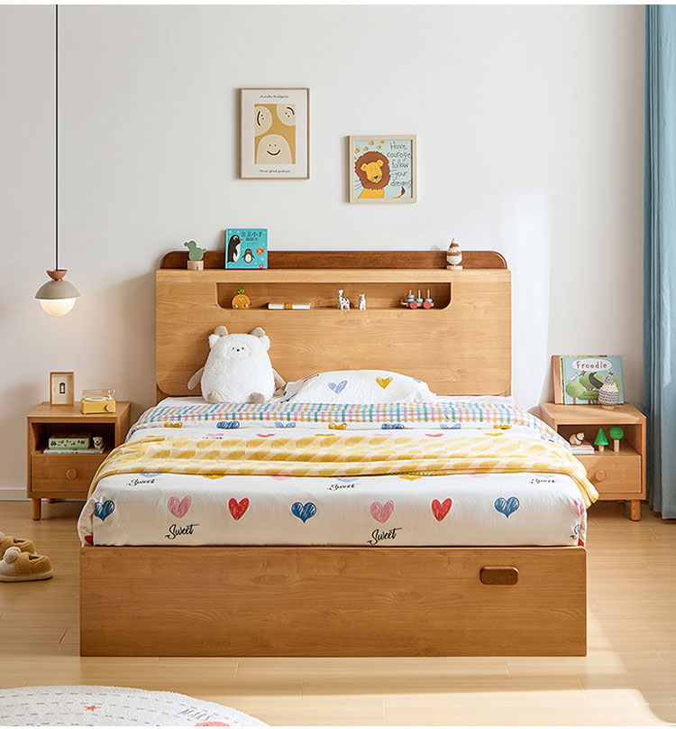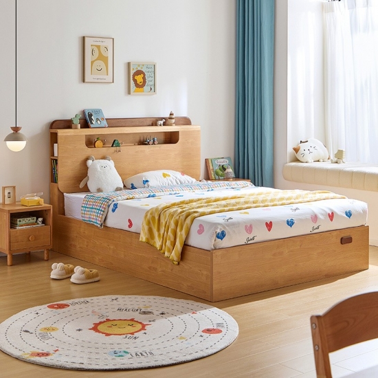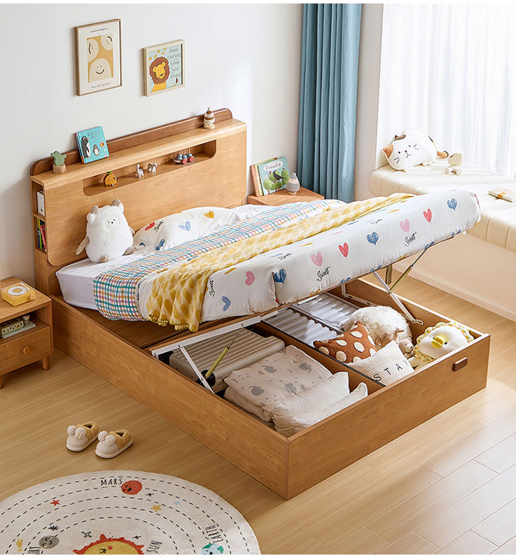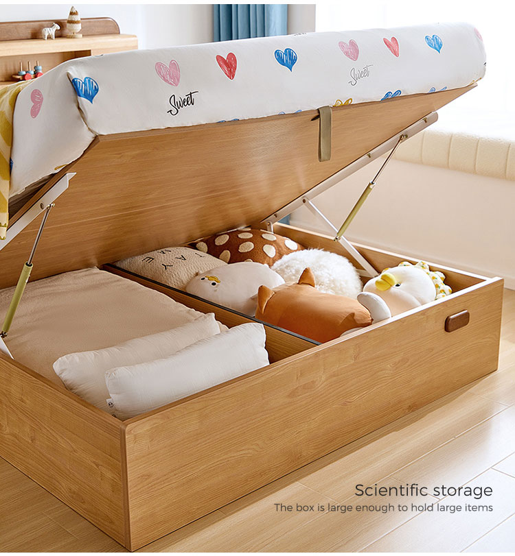 ✔ 省スペース設計: リフトアップ式油圧機構により、おもちゃ、本、季節のアイテムなどを収納できる大容量のベッド下収納スペースが確保されます。