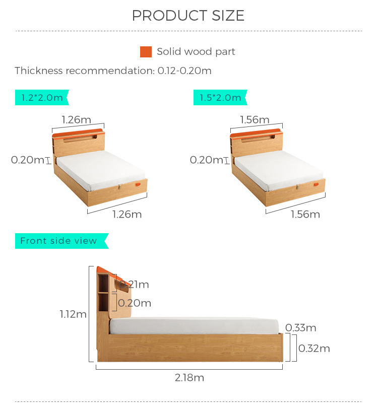 LINSY 北欧スタイル 1.2メートル 空気圧式ハイボックス 子供用ベッド KN6A-A