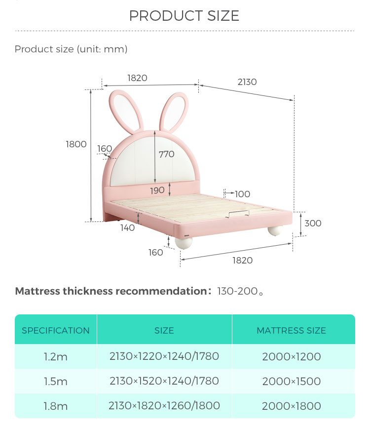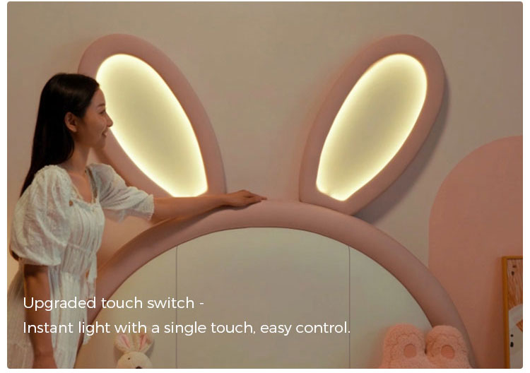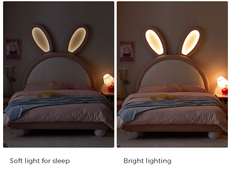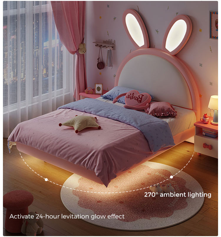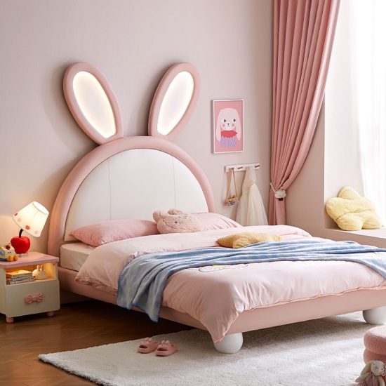 LINSY ピンク バニーベッド 調節可能な光る耳付き レザー PC131-A