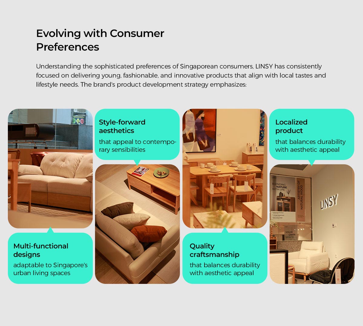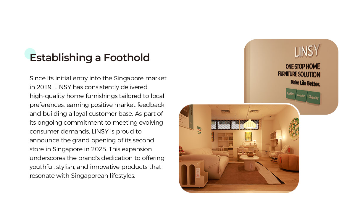 LINSYは2019年にシンガポール市場に初めて参入して以来、地元の嗜好に合わせた高品質の家庭用家具を一貫して提供し、市場から好意的なフィードバックを得て、忠実な顧客基盤を構築してきました。