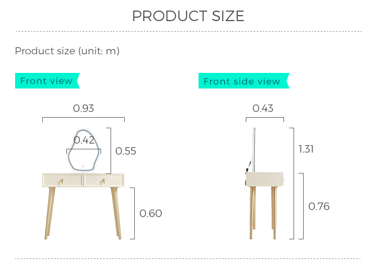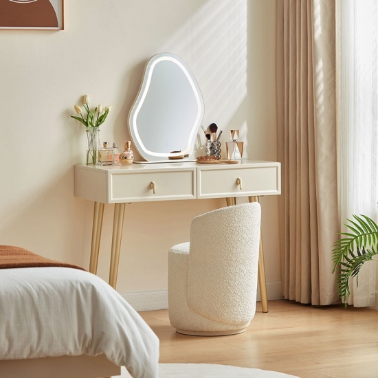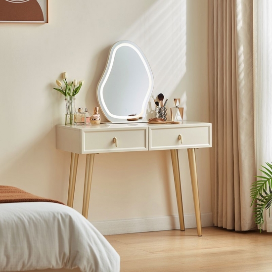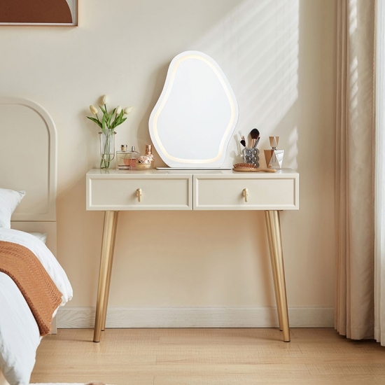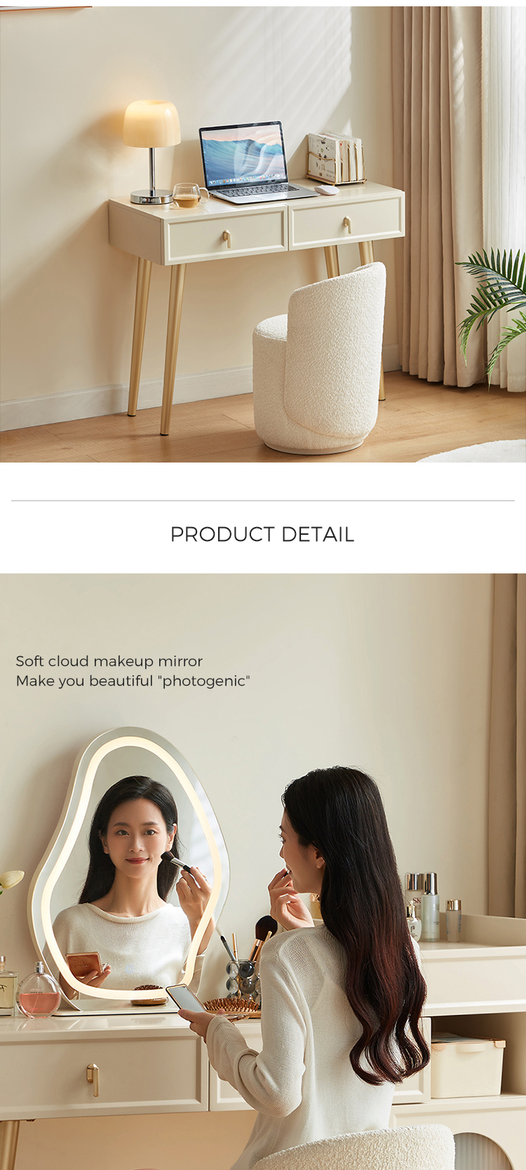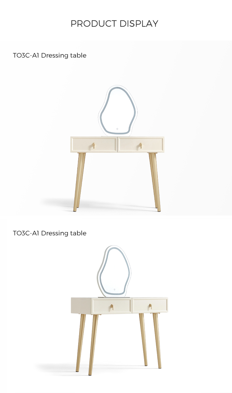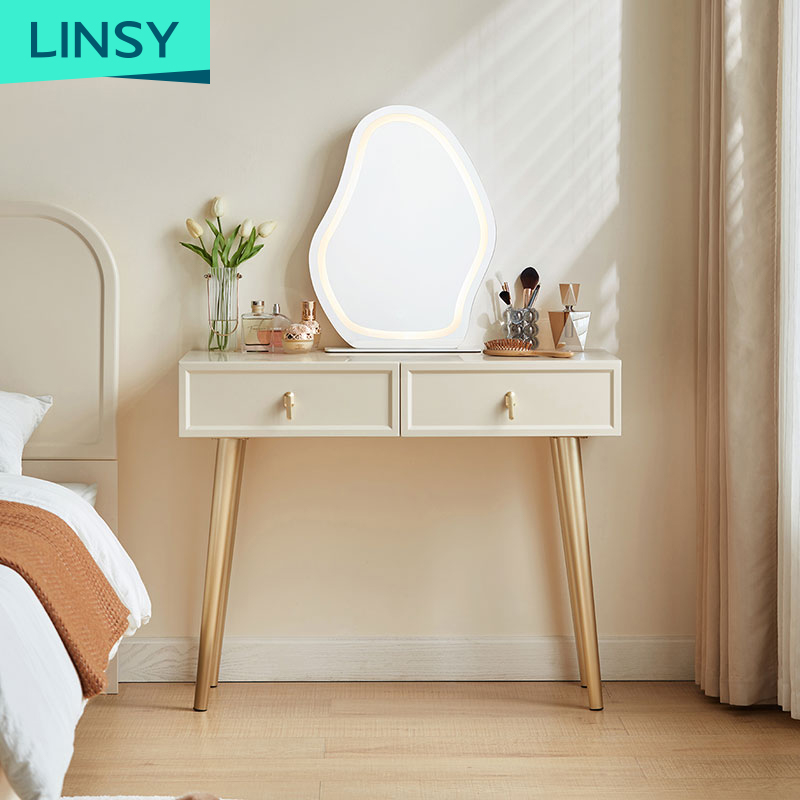 LINSY シンプルデザイン ホワイトカラー ドレッシングテーブル クラウドミラー付き TO3C-A1