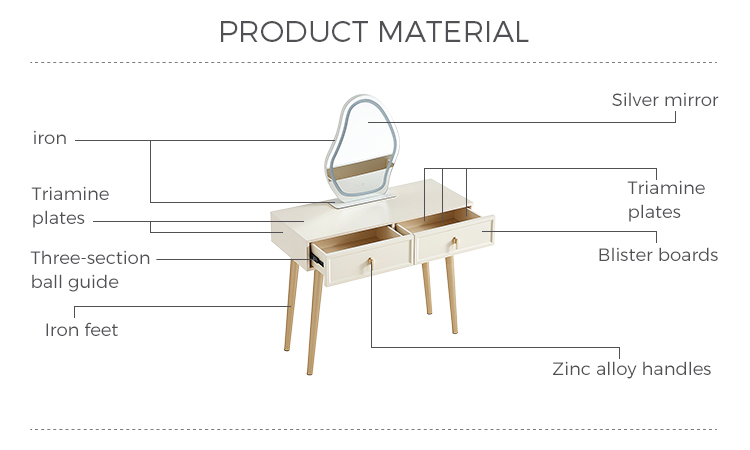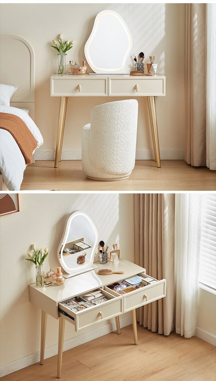 • 複数の収納コンパートメント - 化粧品やジュエリー用の引き出し、棚、または隠しオーガナイザー