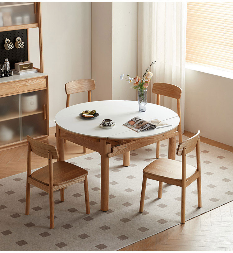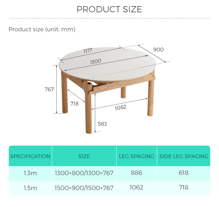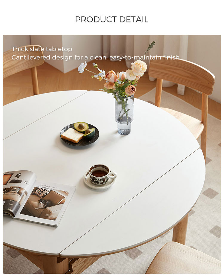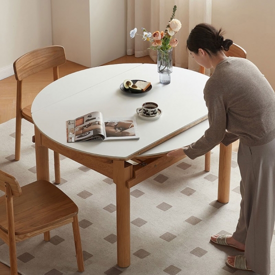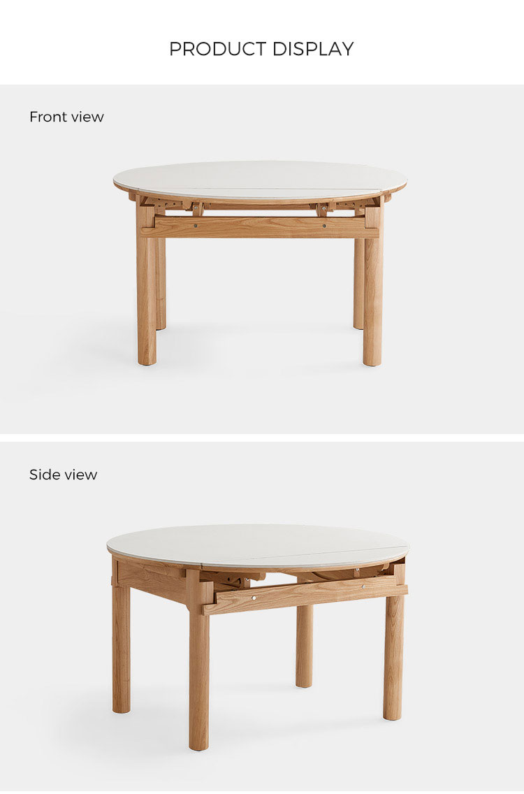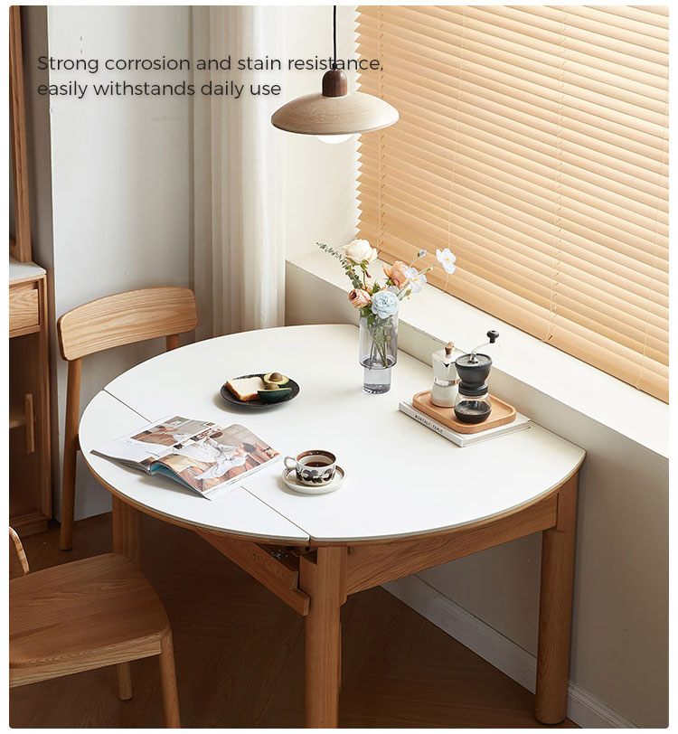スマートな省スペース設計:コンパクトな1.5メートルのコンソール(2~4人用)から、6~8人用の拡張テーブルへとシームレスに移行できます。必要な時に床面積を有効活用できます。