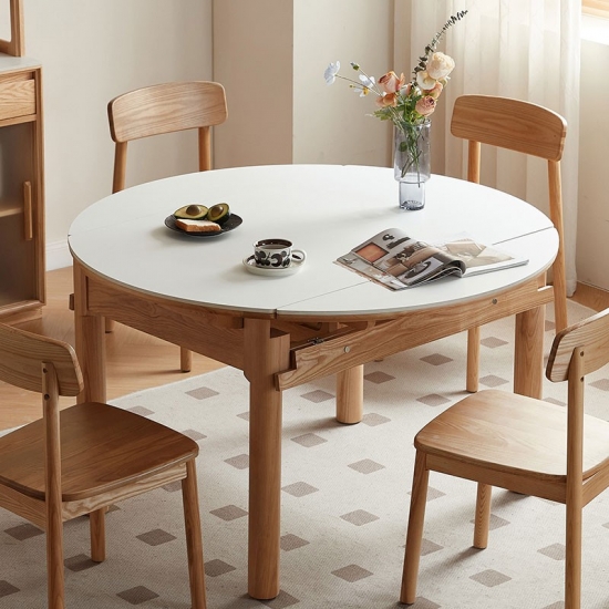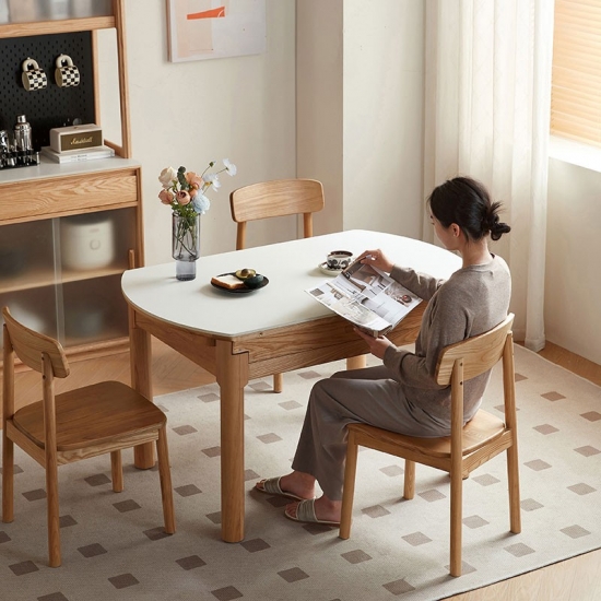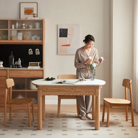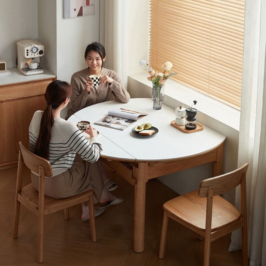モダンな暮らしにスマートなソリューションを提供する、1.5mの伸長式ダイニングテーブルをご紹介します。巧みに設計されたこのテーブルは、スタイルや機能性を損なうことなく、限られたスペースを最大限に活用できる究極のソリューションです。コンパクトなコンソールサイズのテーブルが、ゲストを迎え入れる際にも簡単にフルサイズのダイニングテーブルへと伸長します。