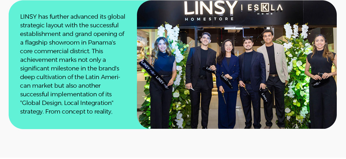 リンジー 旗艦店の設立とグランドオープンの成功により、グローバル戦略レイアウトがさらに前進しました。 パナマの中心商業地区にショールームを開設しました。この成果は、同ブランドがラテンアメリカ市場を深く開拓していく上で重要なマイルストーンとなるだけでなく、「グローバルデザイン、ローカルインテグレーション」戦略の新たな成功例でもあります。