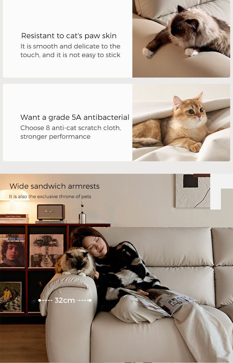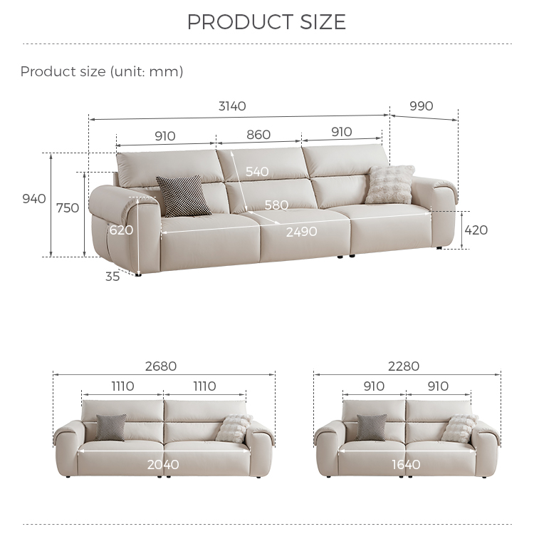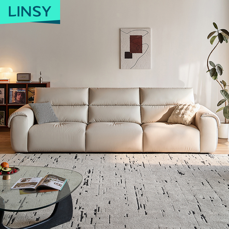 LINSY ウォームサンドカラー 3人掛けレザーソファ BS539-A |