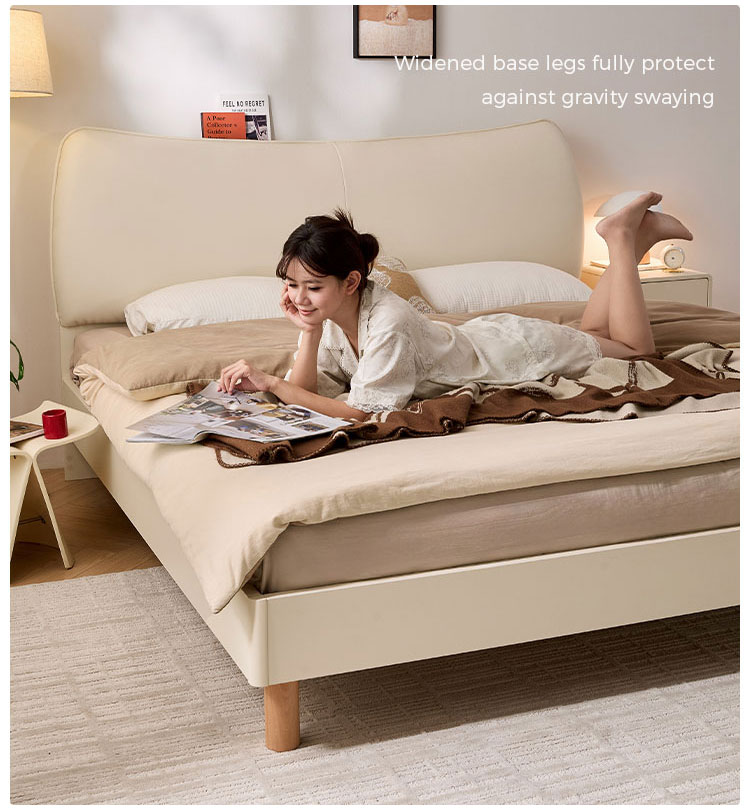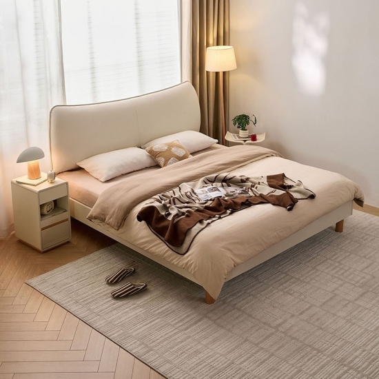 快適さとスタイルを追求したデザイン。柔らかなパッド入りのヘッドボードは、リラックスするのに最適な空間を提供します。清潔感のあるホワイトの仕上げと、仕立てられた張り地は、どんなお部屋にも明るく開放的な雰囲気をもたらします。時代を超越した汎用性を誇るこのベッドは、モダンなシンプルさと日常の快適さを融合させ、穏やかで心地よい眠りの聖域を創り出します。