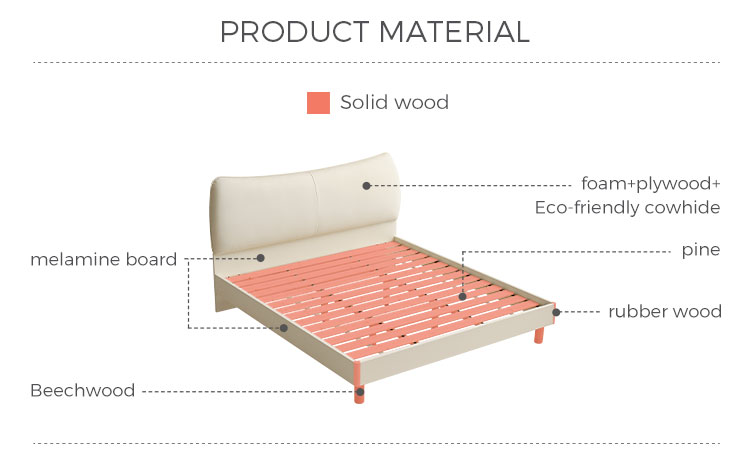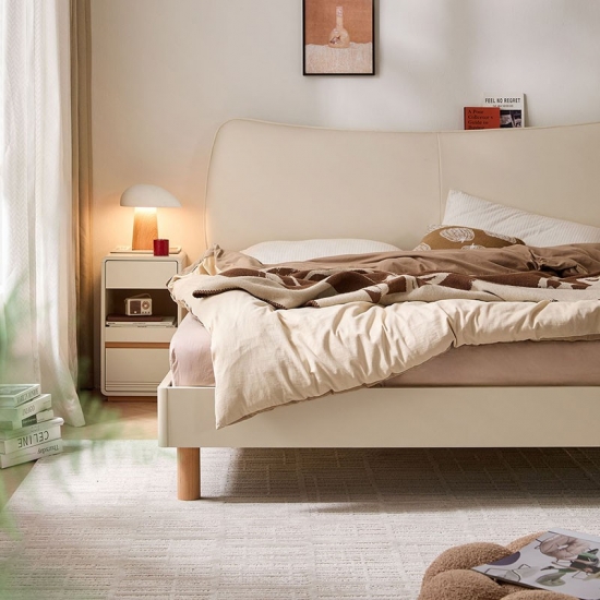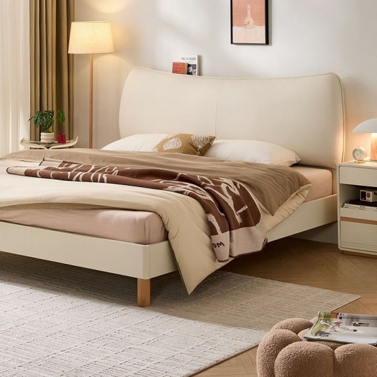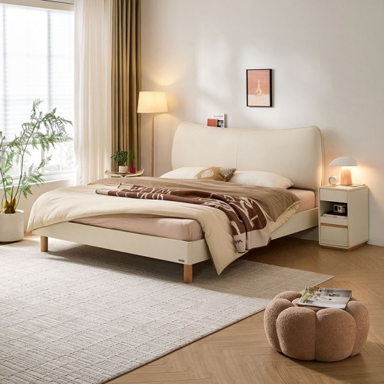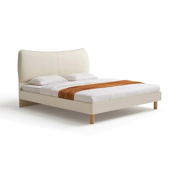 LINSY ホワイト 布張りベッド レザーヘッドボード付き UD10A-A