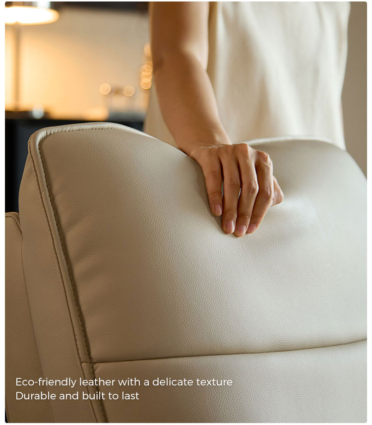 スタイルと実用性の両方を追求したこのリクライニングチェアは、 贅沢なトップグレインレザー 独特の温かみのあるホワイトトーンで、冷たさを感じさせず、居心地の良い風通しの良い雰囲気を醸し出します。 深くてパッド入りの座席と高い背もたれ 人間工学に基づいて設計されており、全身をサポートし、長時間の読書、仕事、または単にリラックスするのに最適です。