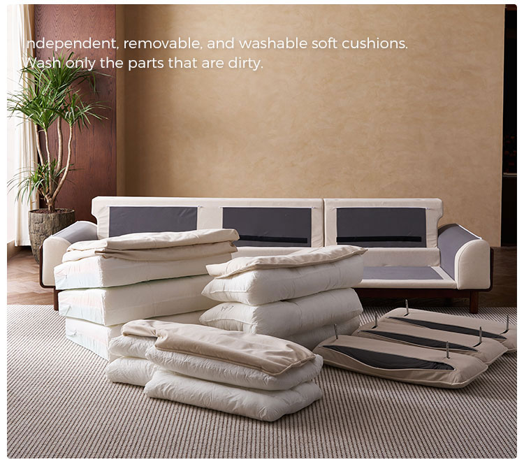 しっかりとしたサポート力と、もとの形に戻る力。丈夫な無垢材のフレームとスタイリッシュな木製脚で作られたこのソファは、長くお使いいただけます。