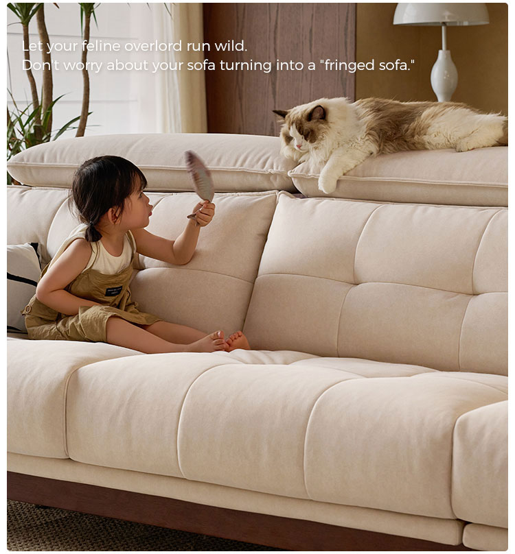 モダンな家庭のために作られたLINSYソファは、洗練されたシルエットと、どんなインテリアにも自然に溶け込む万能なニュートラルグレーのトーンが特徴です。しかし、その真の美しさは表面の美しさの中にあります。高性能な傷防止ファブリックで張られたこのソファは、猫のじゃれつくような足や、日々の喧騒にも余裕で耐えます。その秘密は?この特殊加工された素材は高密度の繊維で織られており、傷、引っ張り、汚れに強く、さらに撥水性も備えているため、お手入れも簡単です。