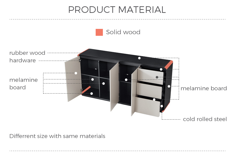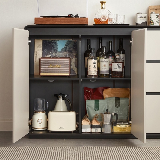 収納力の高いモダンなライトグレーサイドボード RU1T-C |