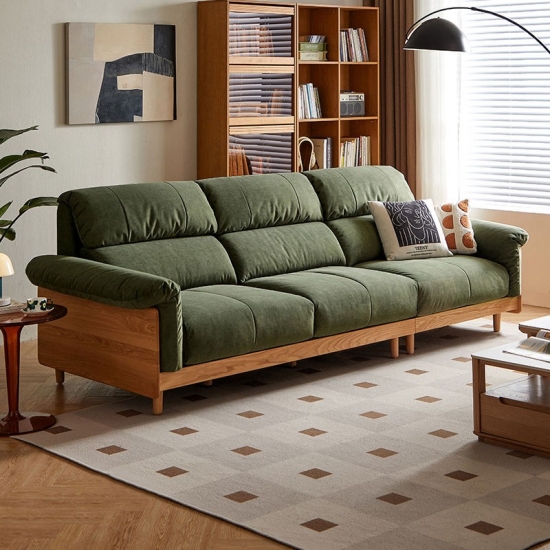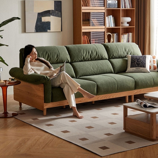 モダンな天然木フレームとミントグリーンのファブリックソファ TD2K-A |
