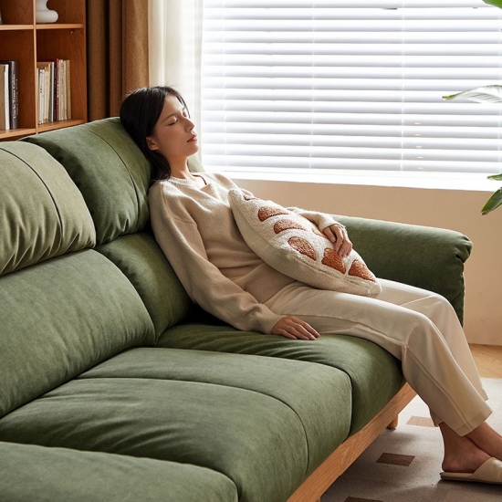 モダンな天然木フレームとミントグリーンのファブリックソファ TD2K-A