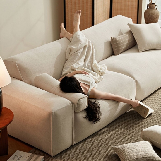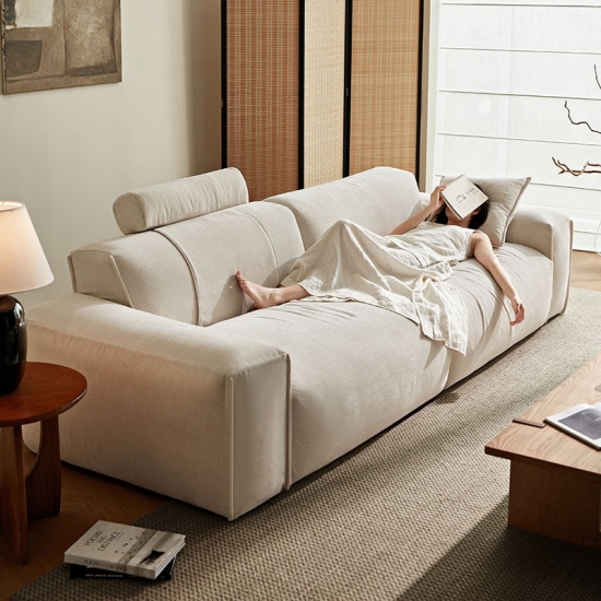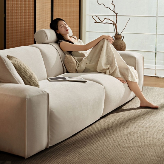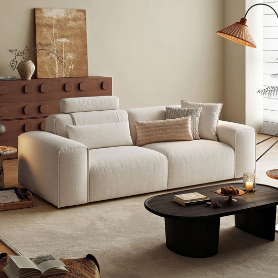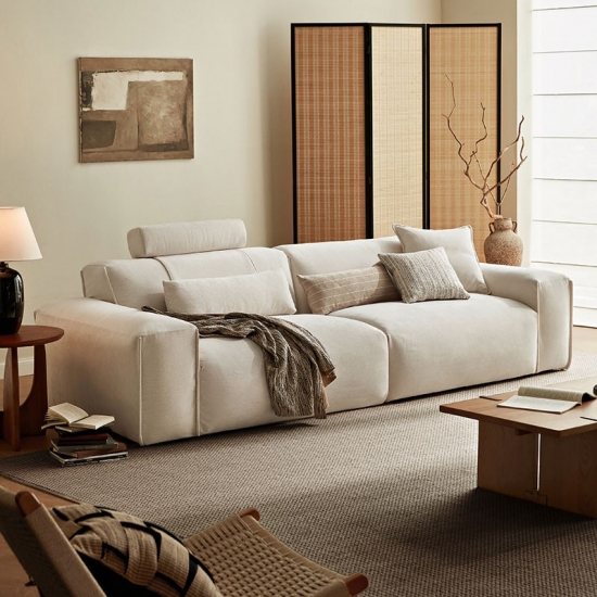 リビングルームに最適な、モダンで広々とした純白のファブリックソファ BS673-A |