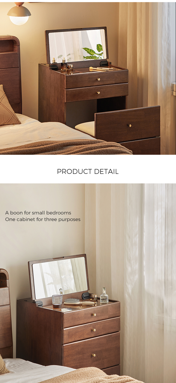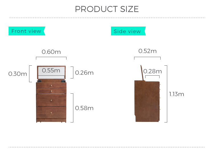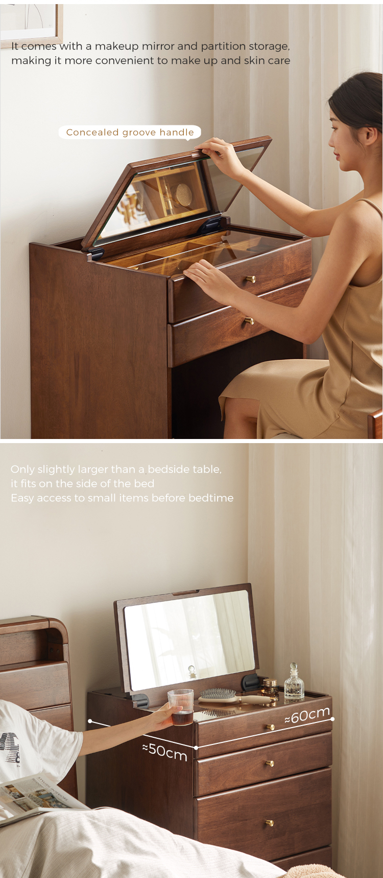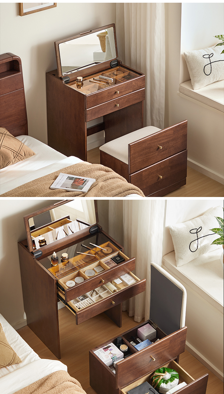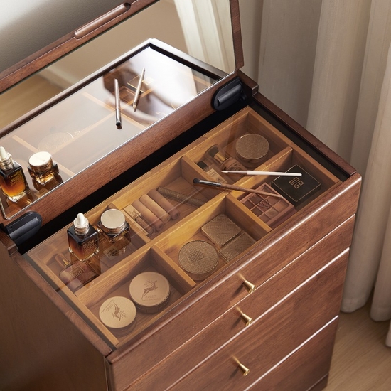 広々としたテーブルトップ: 化粧品、香水、鏡を置くのに十分なスペースがあります。