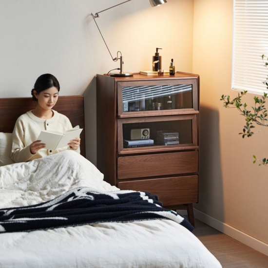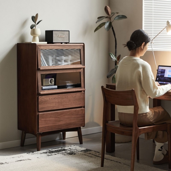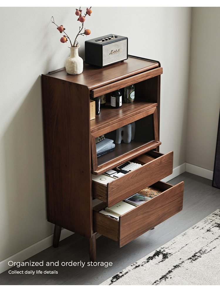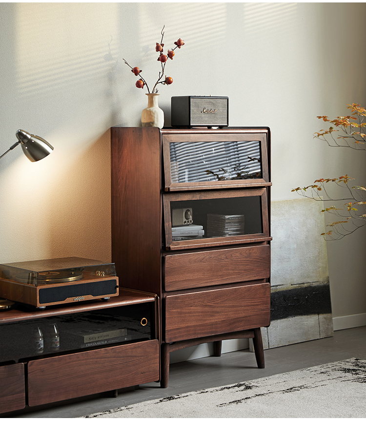 7ネオチャイニーズクルミカラーキャビネットリビングルームチェスト引き出し付きls187e2-b