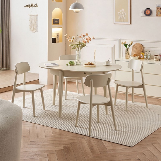 この北欧スタイルのダイニングテーブルセットは、小さな部屋や学生向けの宿泊施設にモダンなダイニングスペースを作り出します。メラミン化粧板のようなホワイトカラーと温かみのあるフレームデザインがモダンなインテリアにマッチし、快適な空間で食事を楽しむことができるモダンダイニングテーブルです。LINSYはさまざまな住宅デザインを提供します。