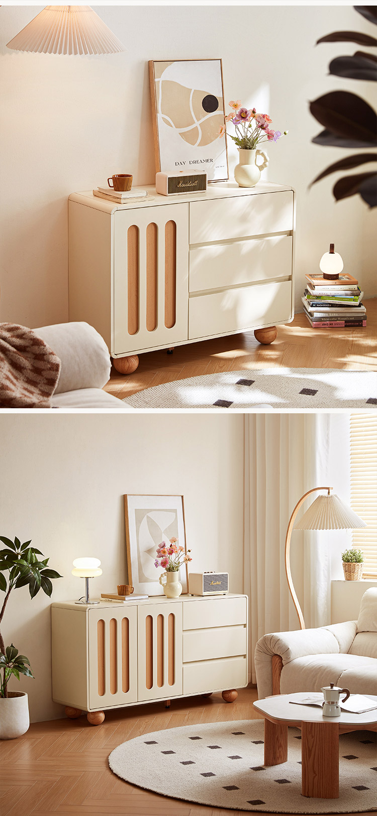 北欧風ホワイトカラーの素敵な引き出し付きキャビネット UD3E-A