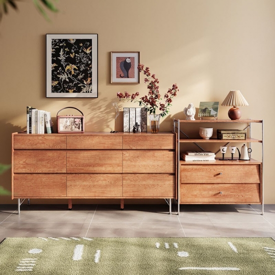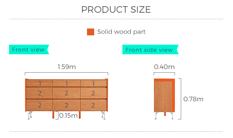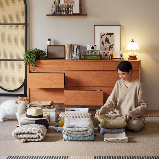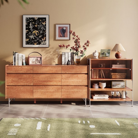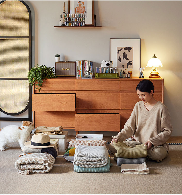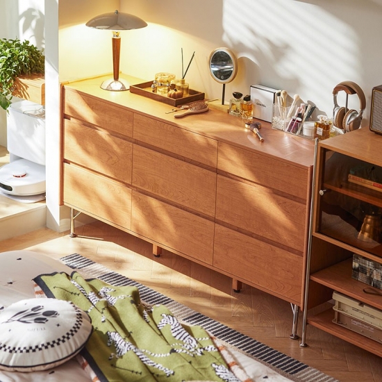 北欧風木製収納キャビネット(引き出し付き)KQ3E-A
